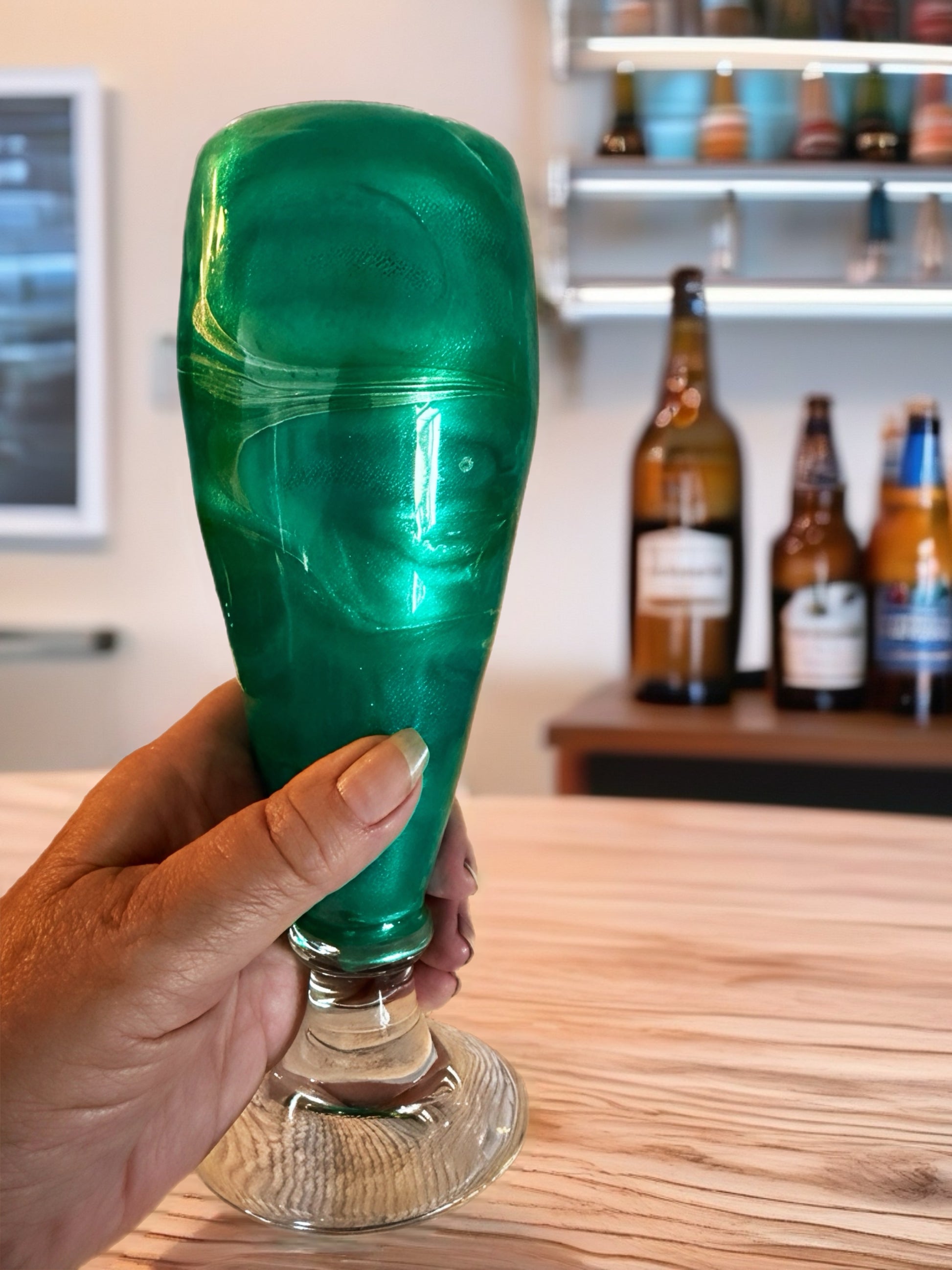 Emerald Swirl Beer Glass — Handcrafted Marbled Glassware